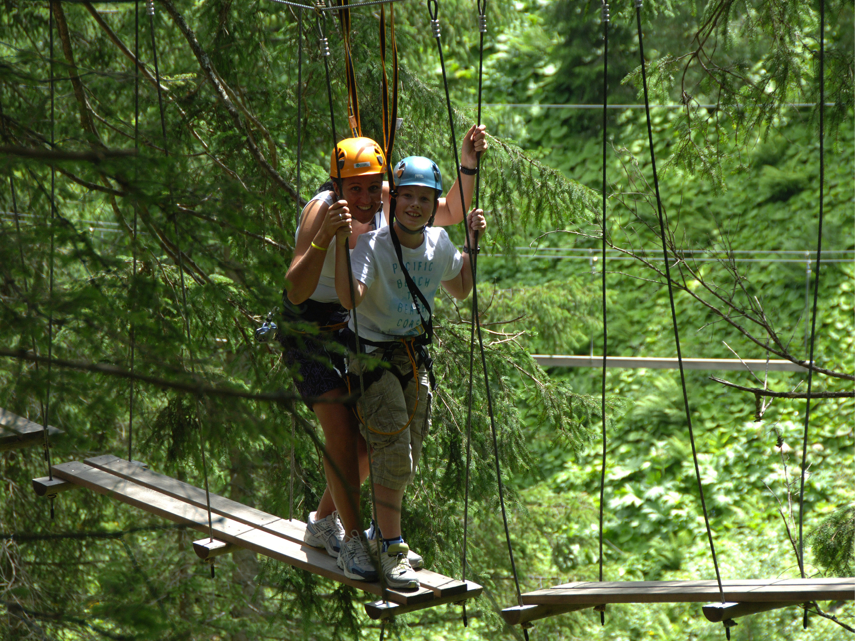 mit bis zu 700m langen Seilrutschen über das Glemmtal.